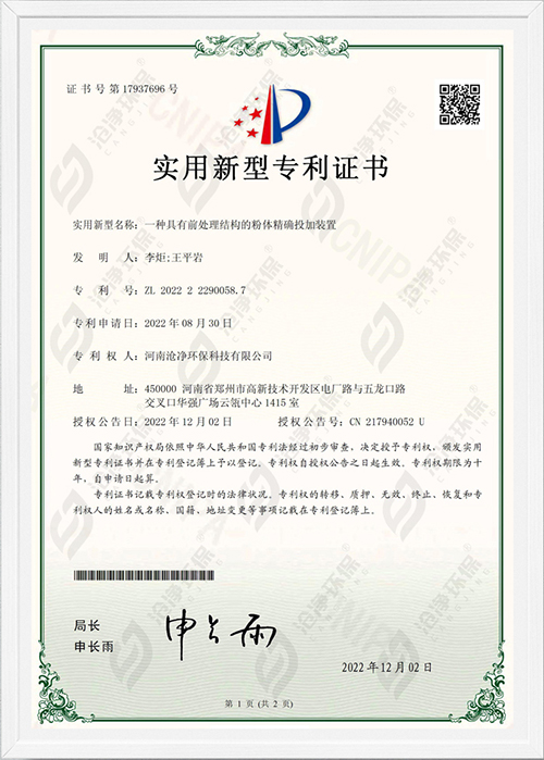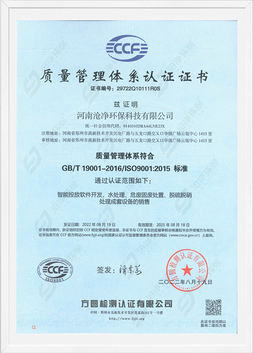 滄凈環(huán)保,是一家集科研、設(shè)計,工程施工、調(diào)試于一體的智能粉體投加系統(tǒng)-國家級高新技術(shù)企業(yè)【編號:GR202341000885】,旗下產(chǎn)品涵蓋水處理、危廢固廢處置,脫硫脫硝處理等領(lǐng)域,且通過ISO 9001:2015質(zhì)量管理體系認(rèn)證。